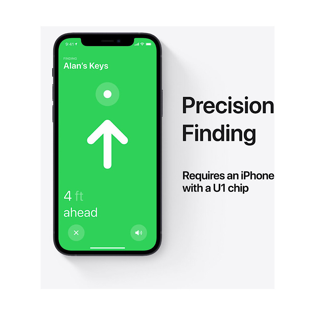 اگر آیفون 11 و یا آیفون 12 دارید، تکنولوژی امواج رادیویی Ultra Wideband این دیوایسها به شما در پیدا کردن مکان دقیق ردیاب ایرتگ کمک میکند. قابلیت Precision Finding درست مثل رمانهای علمی تخیلی مکان دقیق ردیاب AirTag را به کمک آیفون مشخص میکند. با استفاده از این قابلیت پیکان بزرگی روی صفحه آیفون شما نمایش داده میشود که جهت قرارگیری ردیاب را نمایش میدهد و همچنین طول فاصله بین شما و ردیاب نیز قابلرؤیت است. البته که امکان استفاده از این ویژگی در ایران وجود ندارد و تنها میتوانید لوکیشن دستگاه را روی نقشه مشاهده کنید.