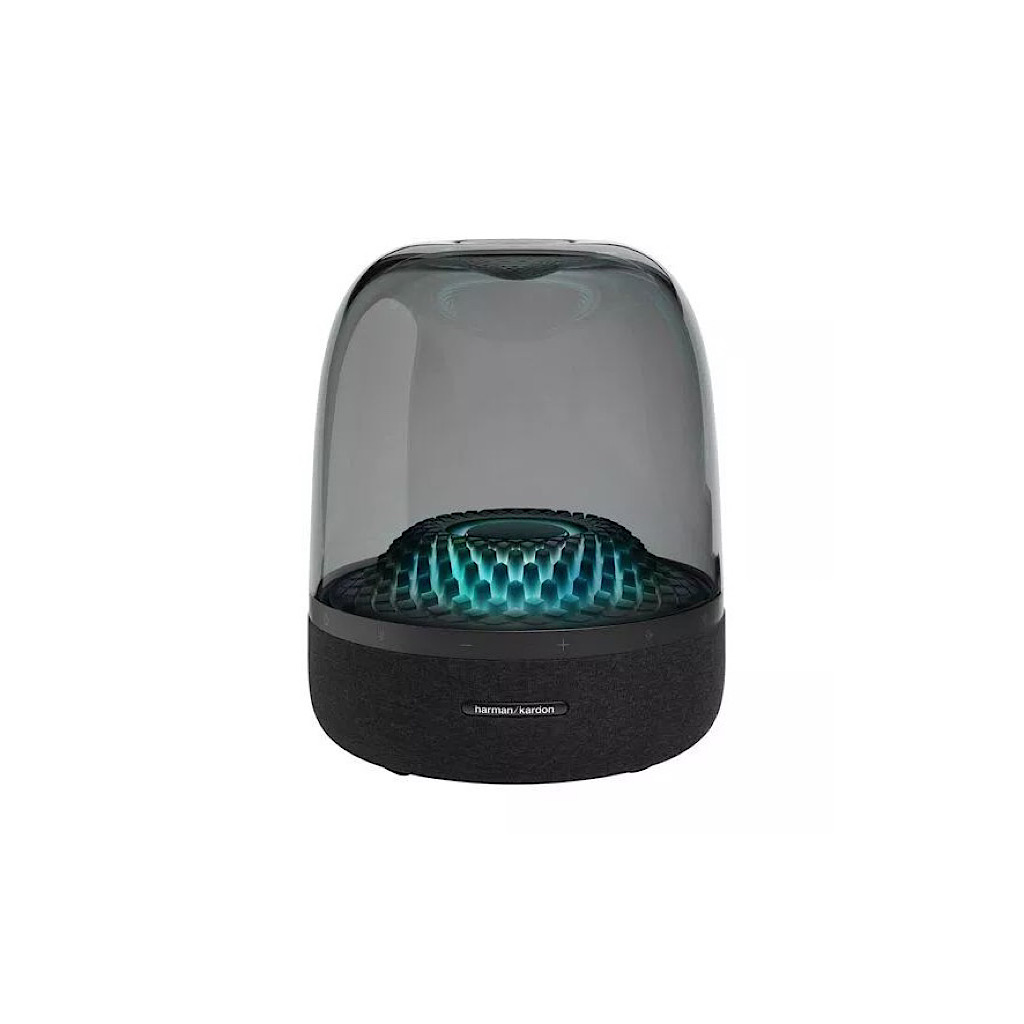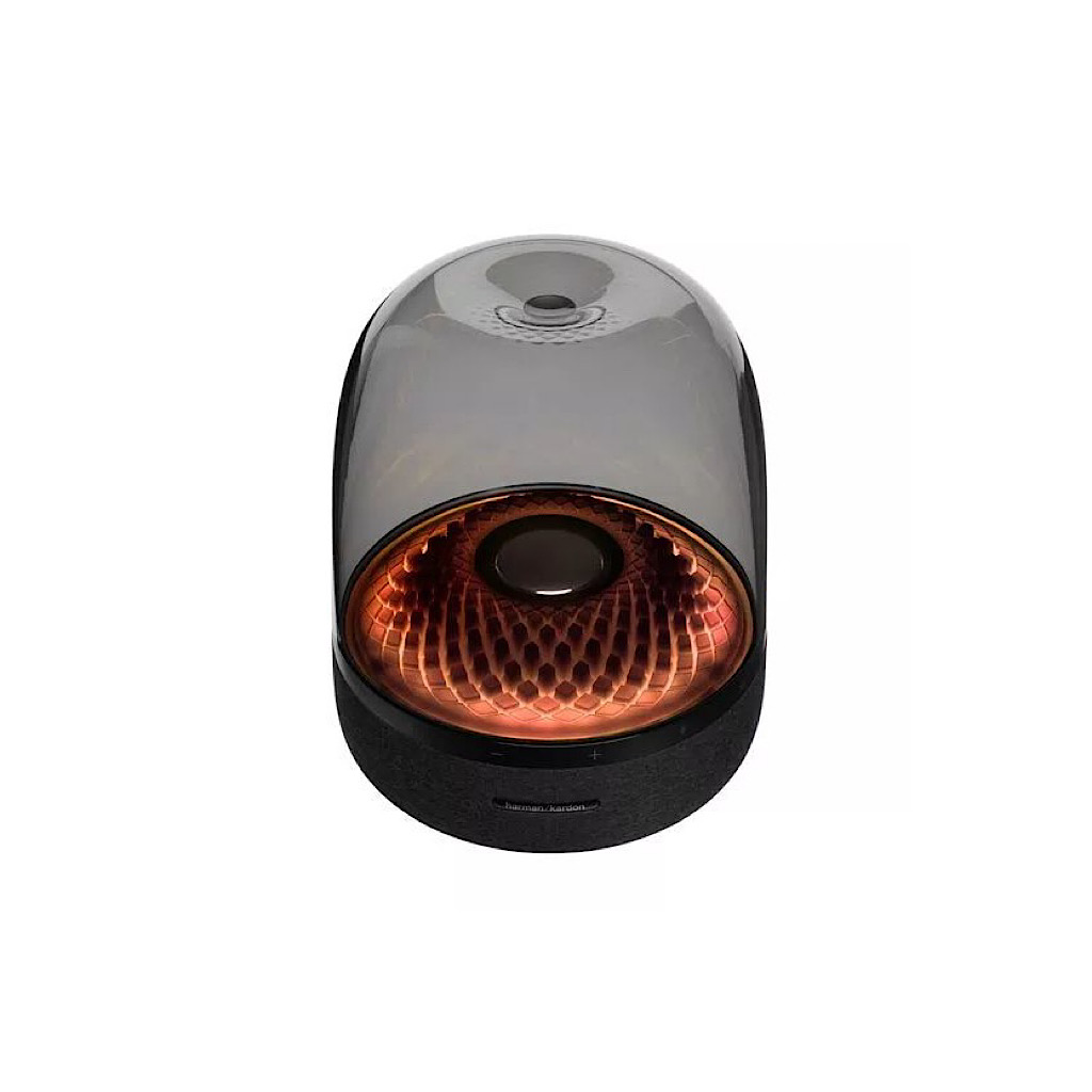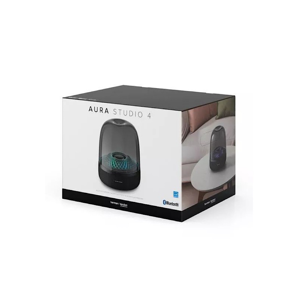 بهطورکلی میتوان کمپانی هارمن کاردن را یک کمپانی قدیمی تولیدکننده انواع اسپیکرها که توجه ویژهای به شکل ظاهری محصولات خود دارد، دانست. بااینوجود که AURA STUDIO 4 نسل چهارم سری AURA است به اصالت و طراحی مینیمال نسلهای اولیه این اسپیکر وفادار مانده است و تنها در بخش نورپردازی، تغییر جدی ظاهری در این محصول اتفاق افتاده است. به بیان دقیقتر، نسل چهارم AURA STUDIO دارای ۵ حالت نورپردازی مجزا است که میتوان شدت نور را در این حالات در ۳ سطح مختلف تنظیم کرد.